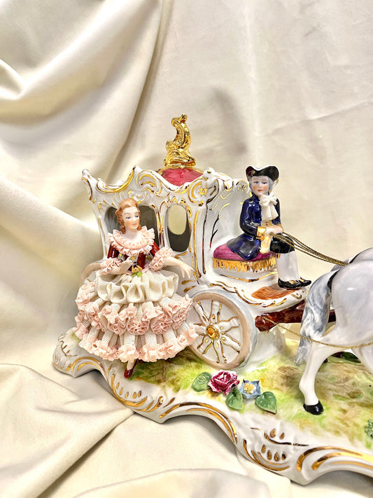 Porcelianinė figūra su karieta ir žirgais
