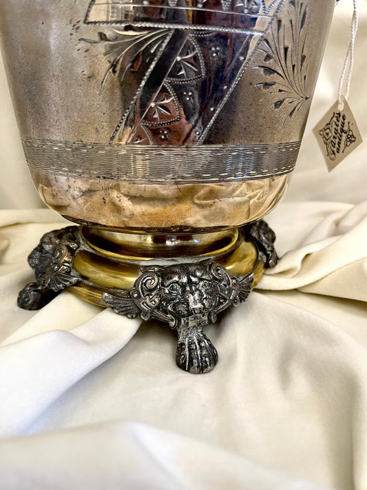 XIX a. šampano kibiras su liūto galvų kojomis