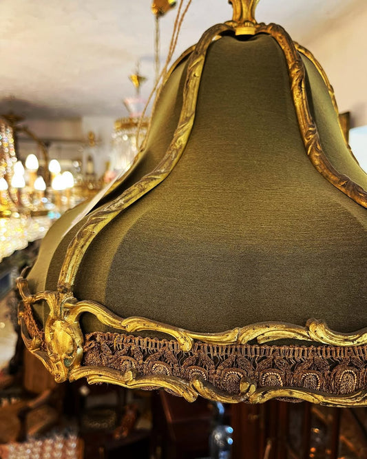 Auksuotas šviestuvas su žalios spalvos barchatu