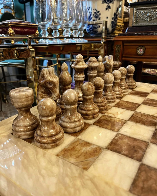 Alebastro šachmatų staliukas su figūromis