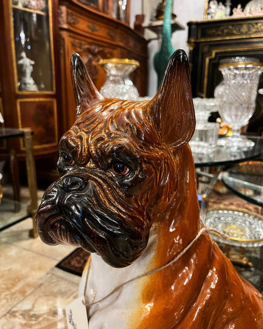 Glazūruotos terakotos boxer veislės šuns skulptūra