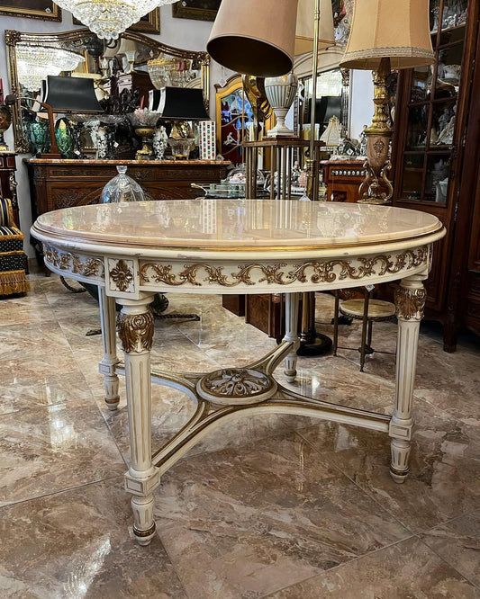 Apvalus valgomojo stalas su marmuru