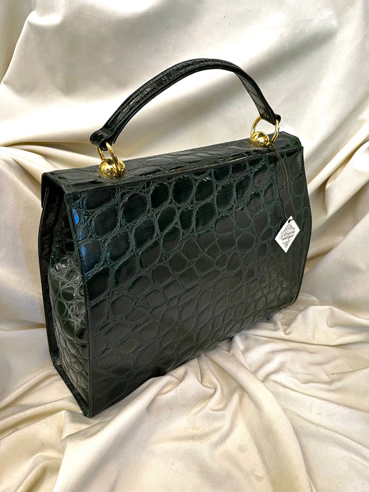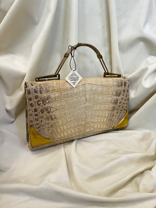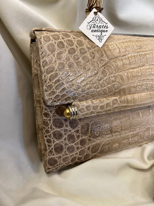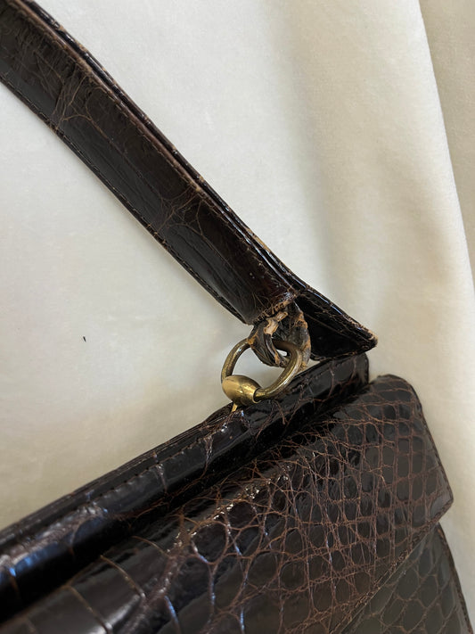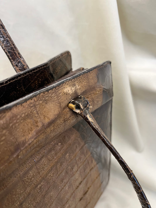Ruda vintažinė natūralios odos rankinė su krokodilo raštu