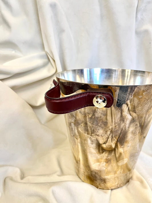 Pasidabruotas šampano kibiras su odinėmis rankenėlėmis