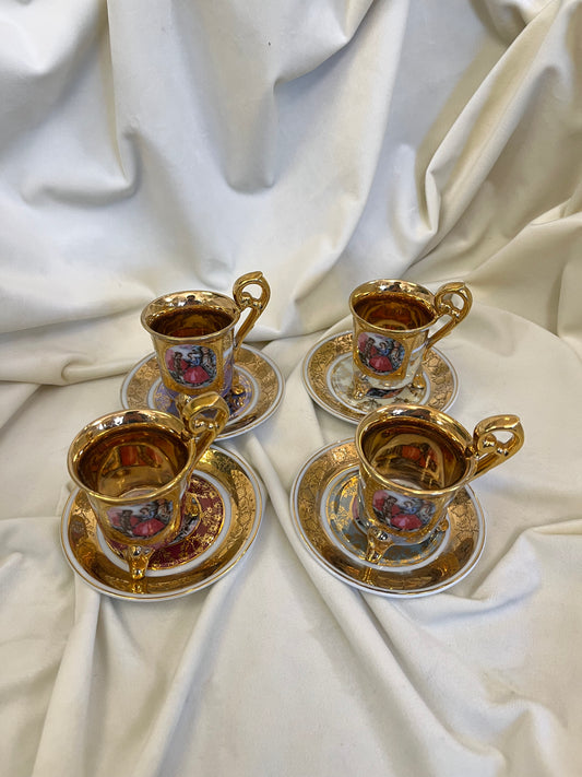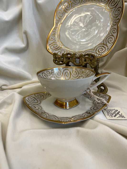 Auksuotas porcelianinis kavos arbatos puodelis
