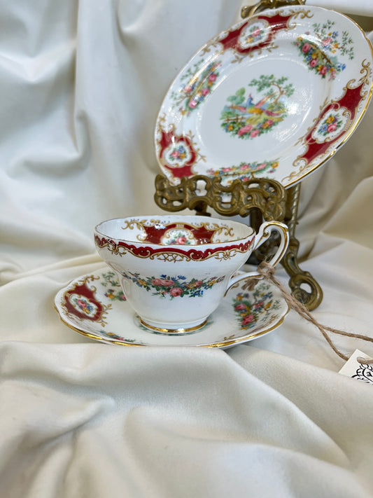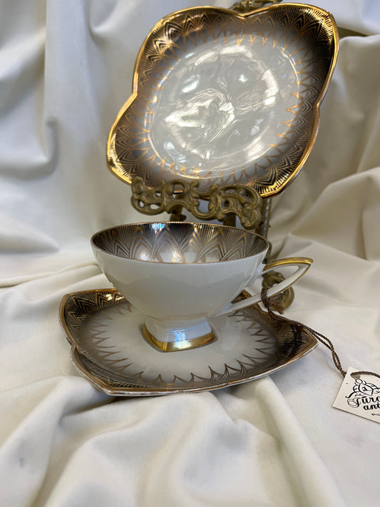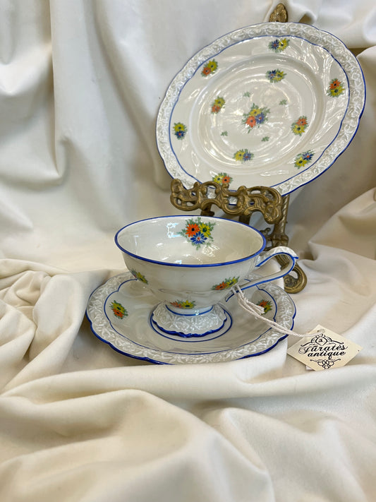 Rankomis dekoruotas Meito China puodelio trio