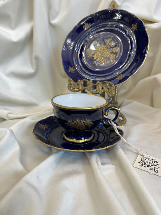 Kavos arbatos puodelio trio su kobalto glazūra
