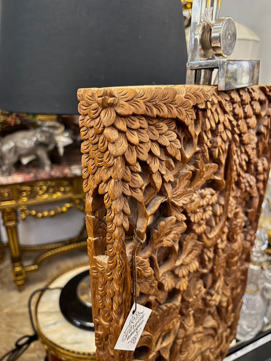 Rankų darbo medinis reljefinis paveikslas – rytietiškų motyvų drožyba