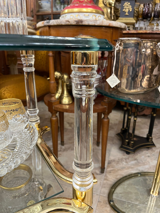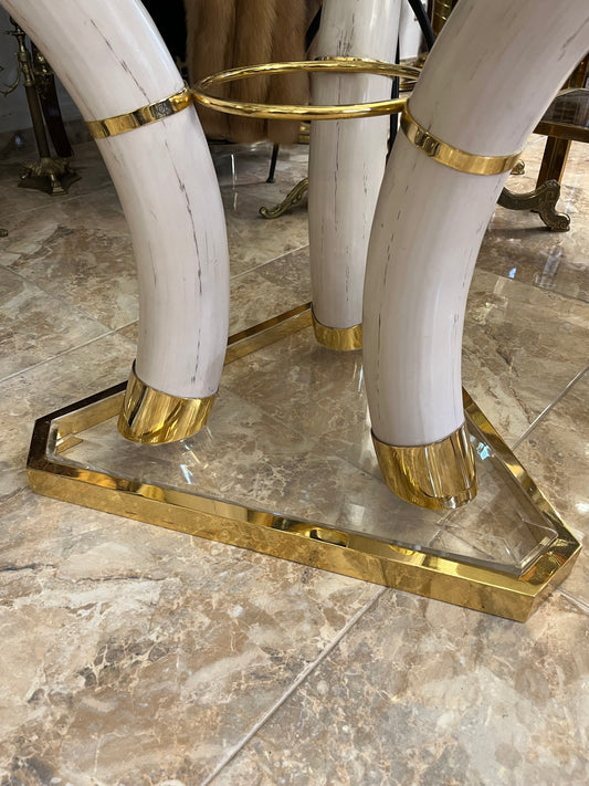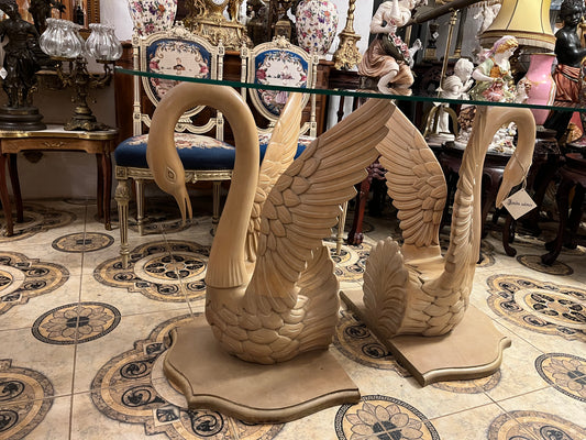 Valgomo stalas su medinėmis gulbėmis ir stiklo viršumi