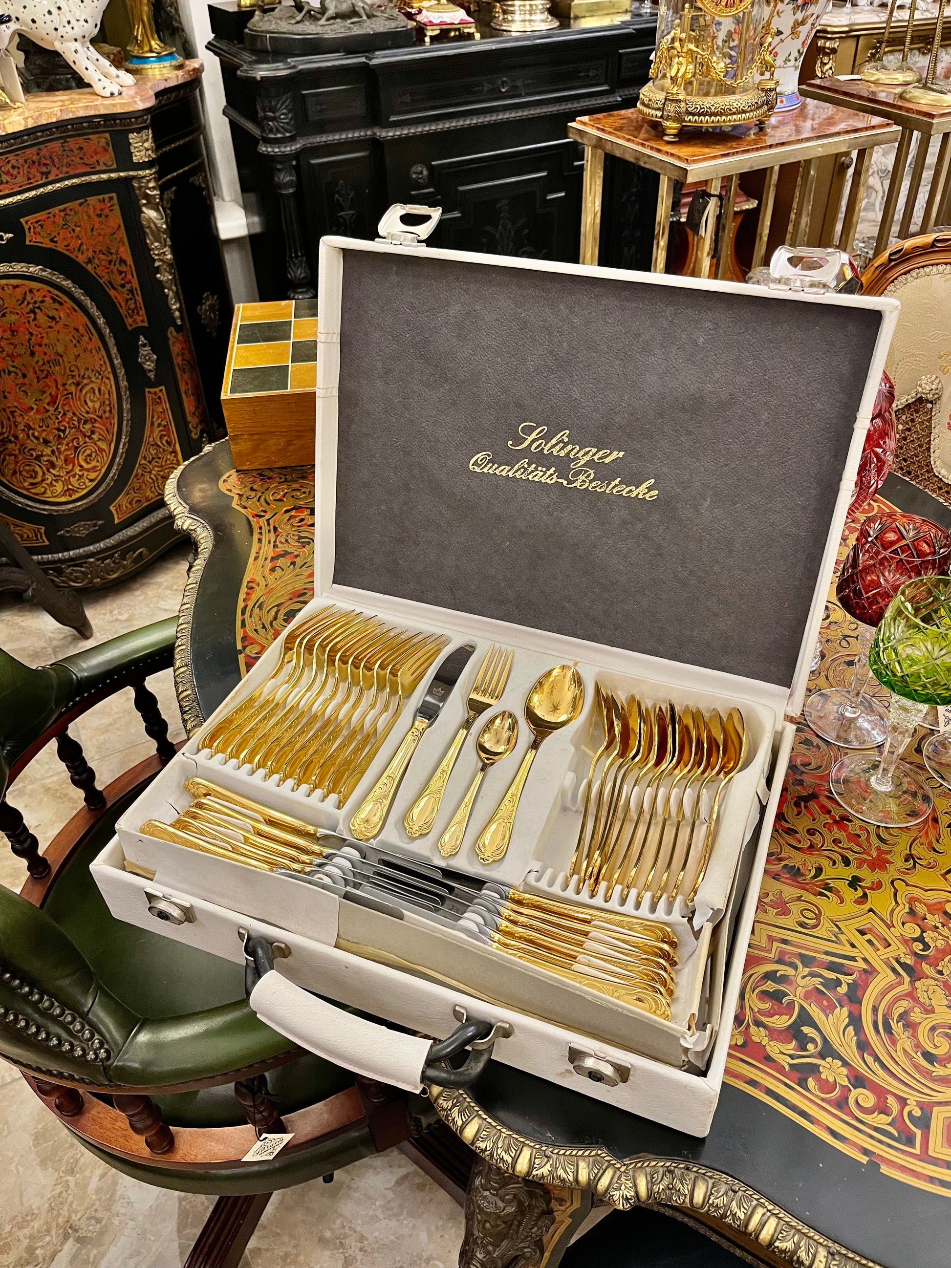 Itin prabangus Solingen (Vokietija) gamybos stalo įrankių rinkinys, dengtas 23/24 karatų auksu, sukurtas ieškantiems aukščiausios kokybės ir nesenstančios elegancijos.