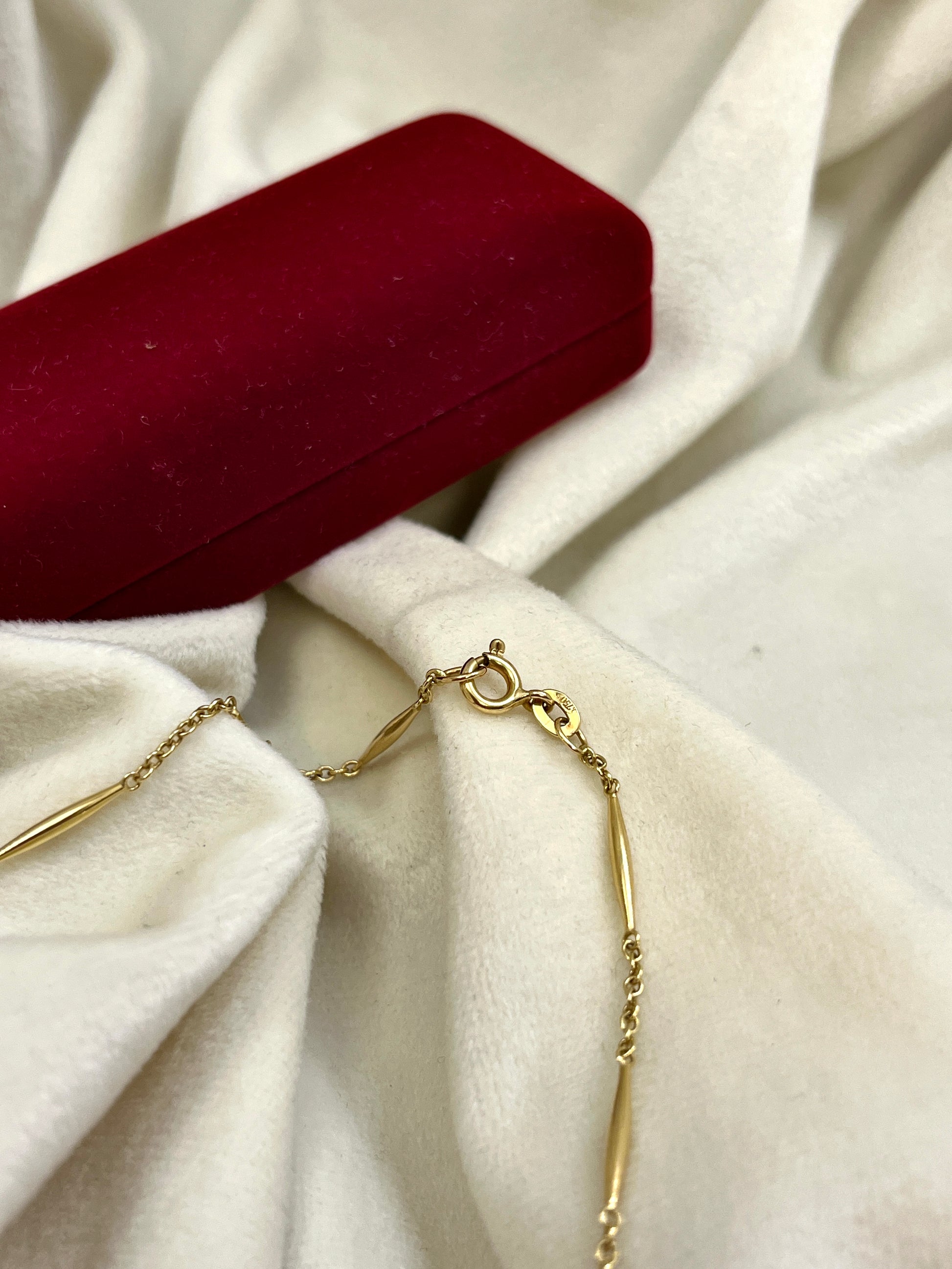Geltono aukso grandinėlė su natūraliais perlais.