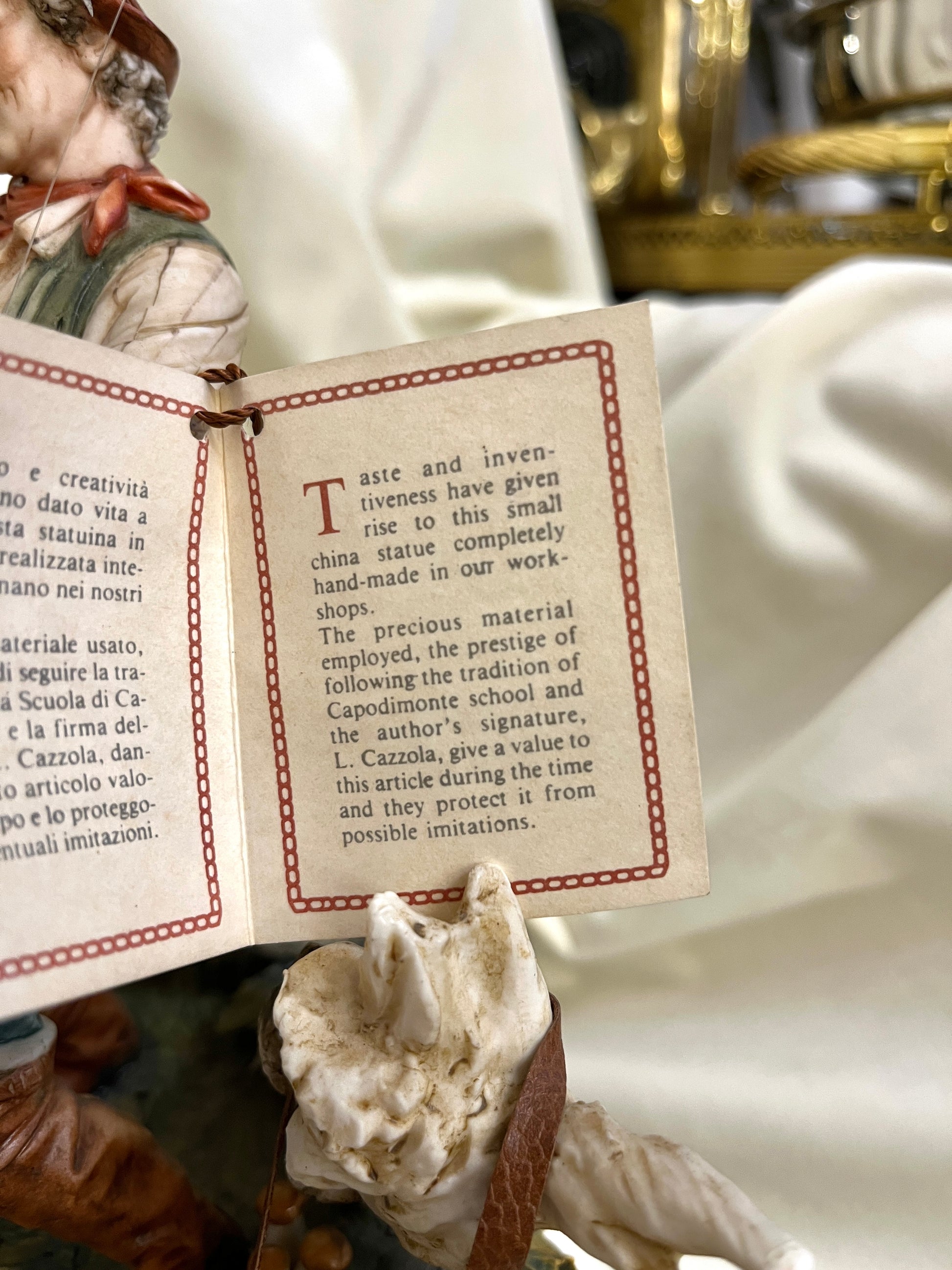 Išraiškinga Italijos porceliano gamintojo Capodimonte skulptūra “žvejys” su mediniu pagrindu. Skulptūra turi originalų sertifikatą bei fabriko žymėjimą.