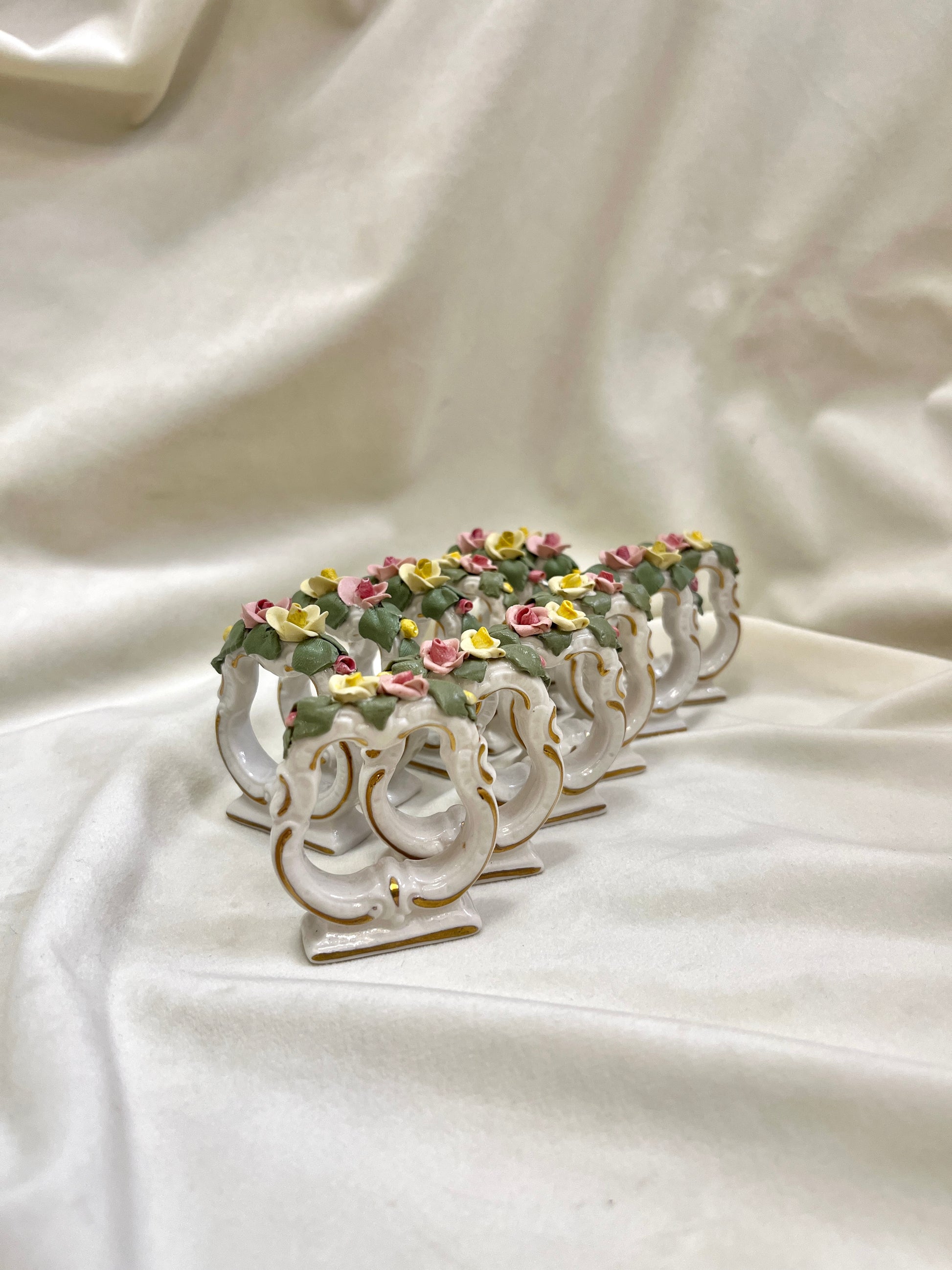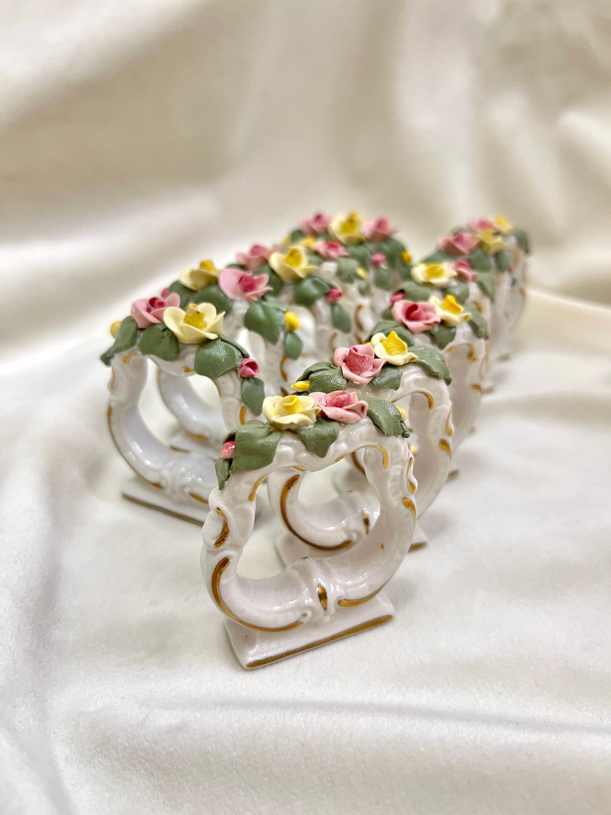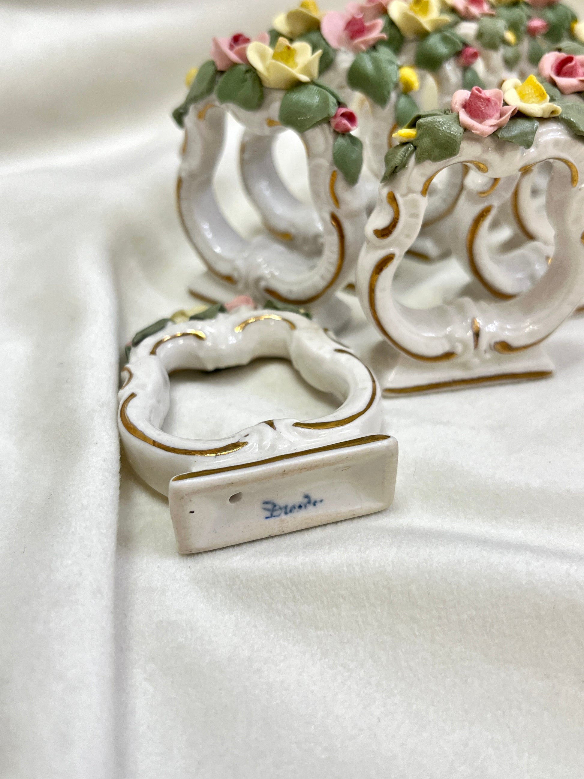 Vokietijos porceliano gamintojo Dresden servetėliu žiedai su gėlių dekoru.