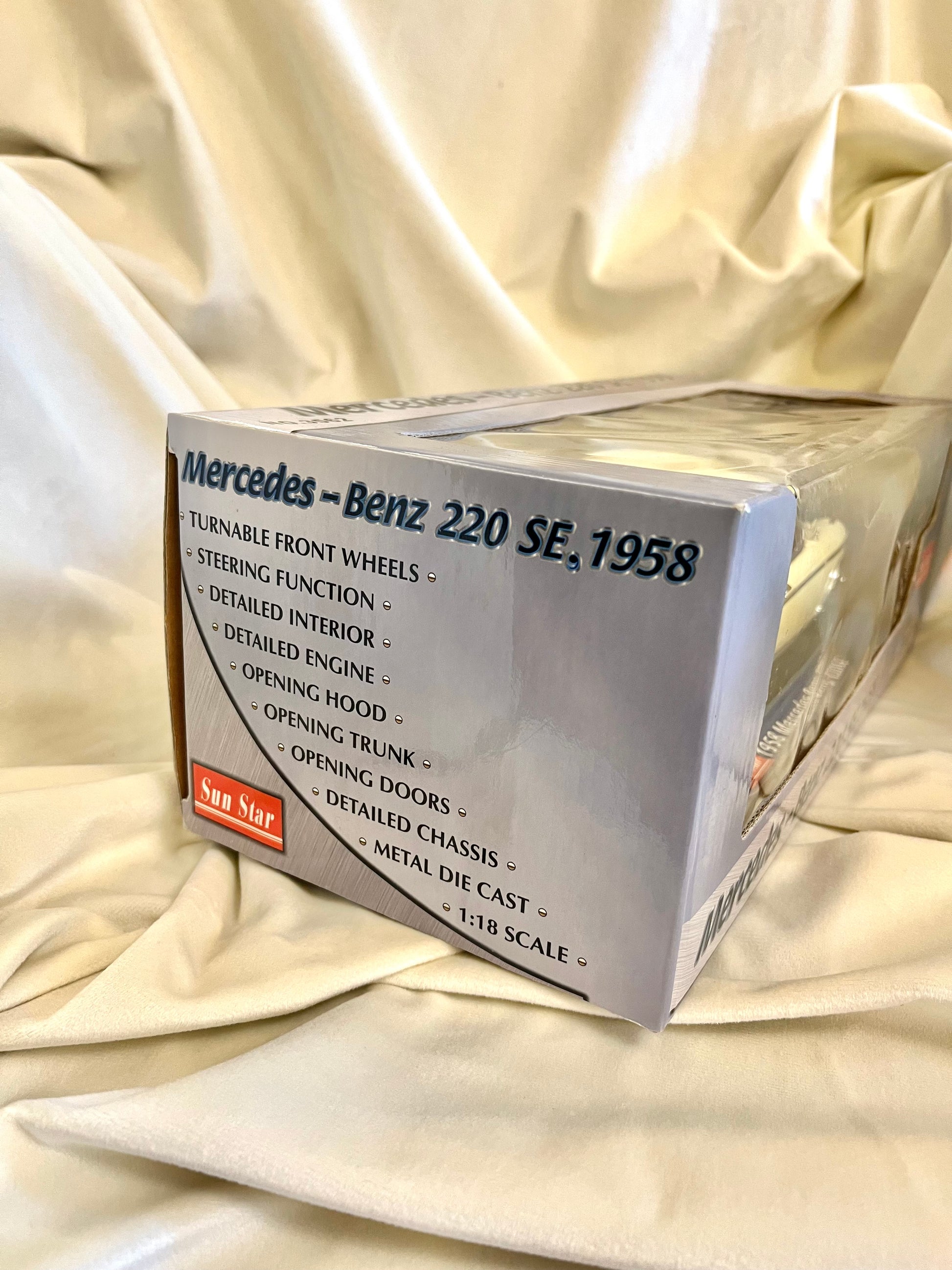 Kolekcinis 1:18 mastelio modelis, įkūnijantis „Mercedes-Benz“ aukso amžių ir 1950-ųjų pabaigos prabangą. Šis „Sun Star“ gamintojo „Metal Die-Cast“ serijos modelis tiksliai atkuria kultinį 220 SE (W128) kupė, kuris tuo metu buvo laikomas techninės pažangos ir aristokratiško stiliaus etalonu.