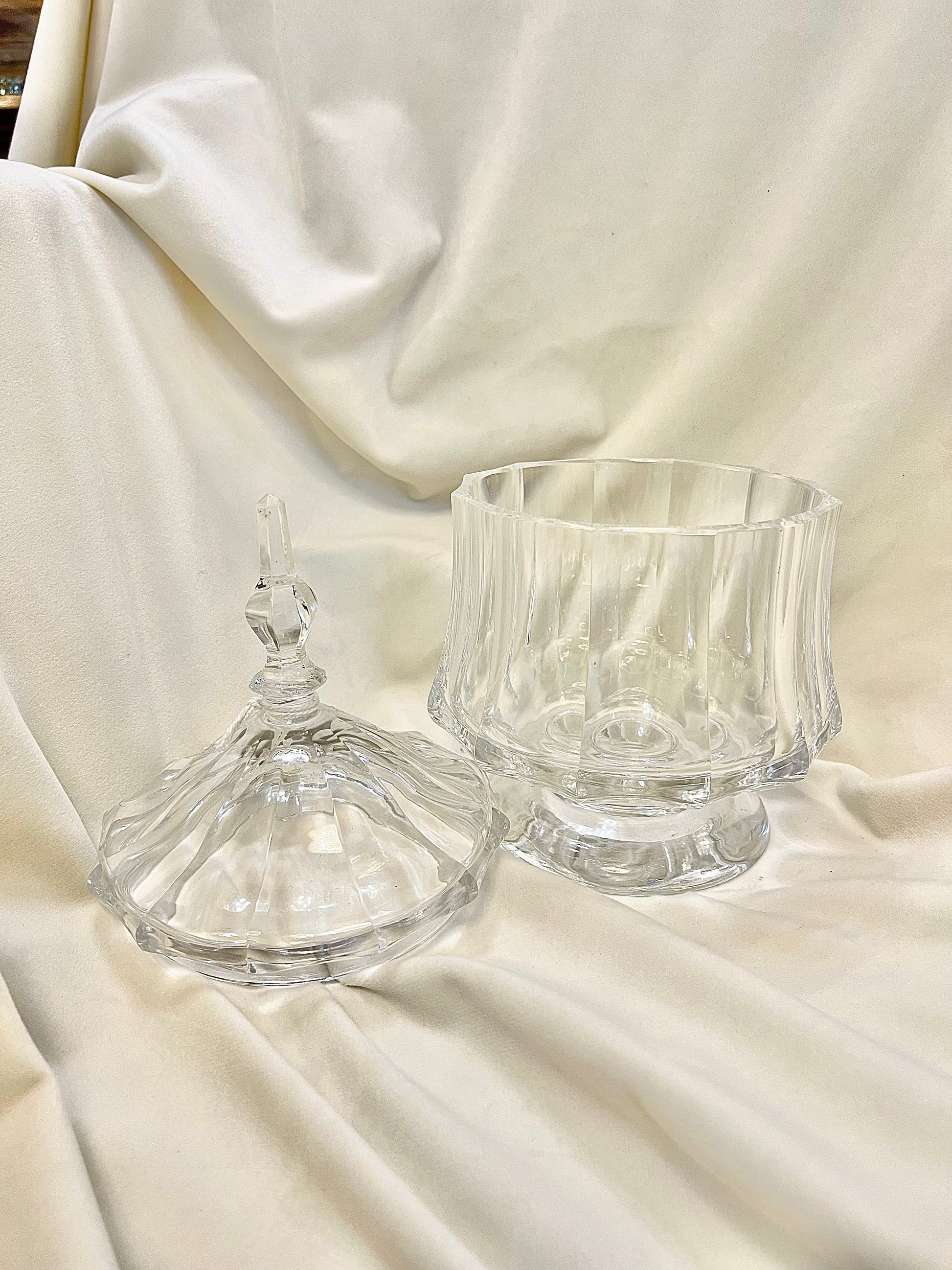 Kokybišo bei aukšto lygio pjovimo krištolo indelis su kojele ir dangteliu puikiai tinkantis saldumynams, sausainiams, riešutams ar tiesiog daiktams susidėti.