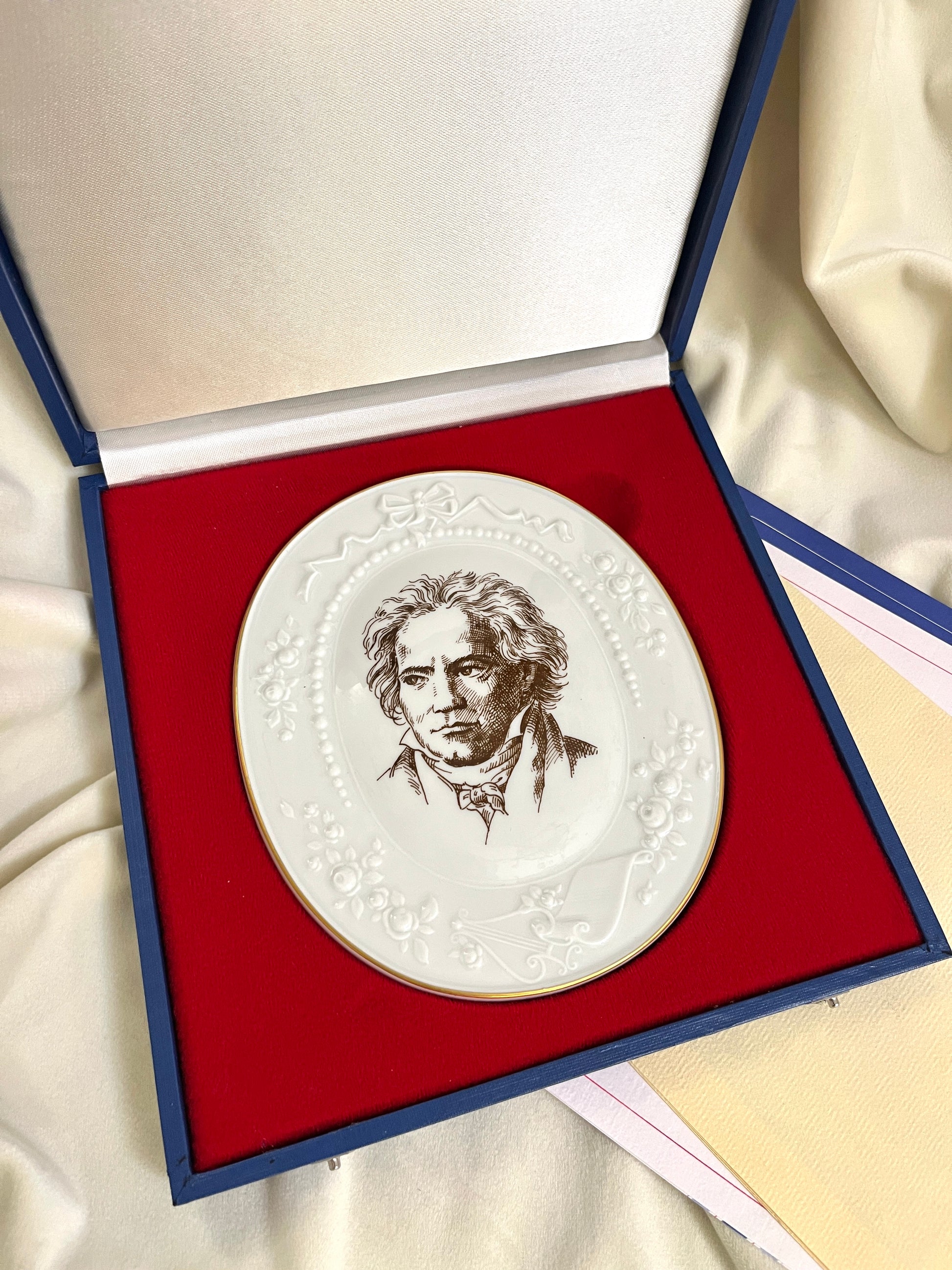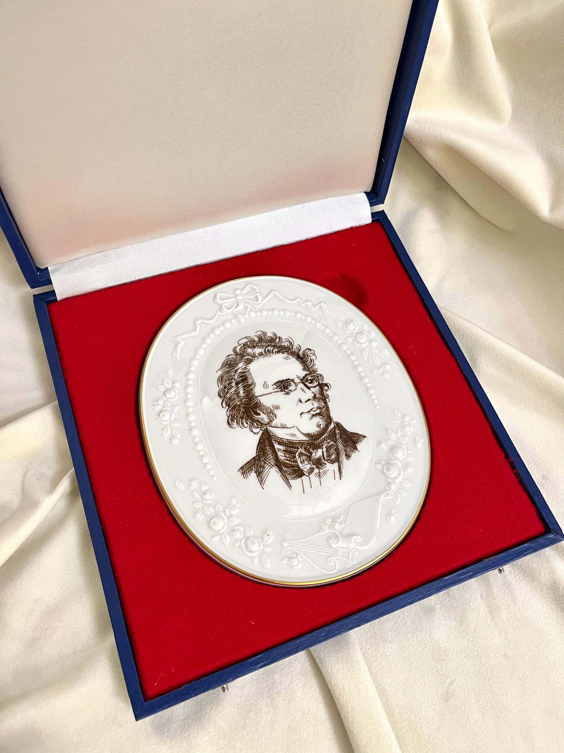Limituoto leidimo Meissen porceliano paveikslėliai su garsiausiais kompozitoriais. Komplekte originalios dėžutės, sertifikatai. Viso 4 vnt.