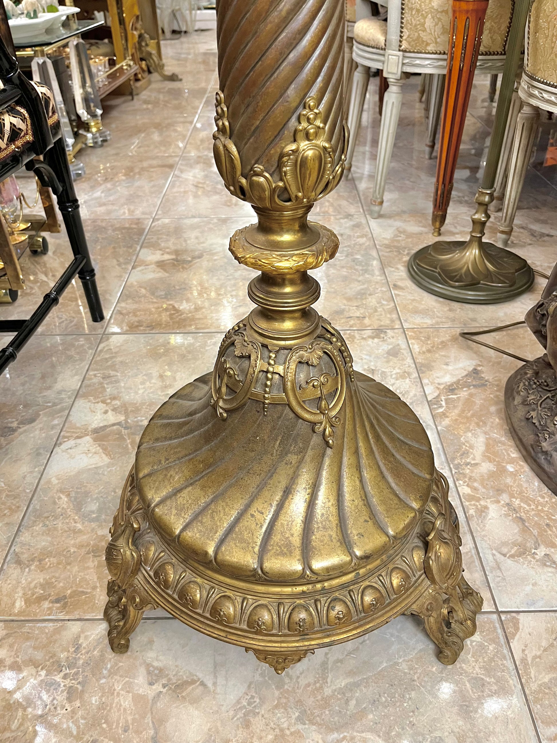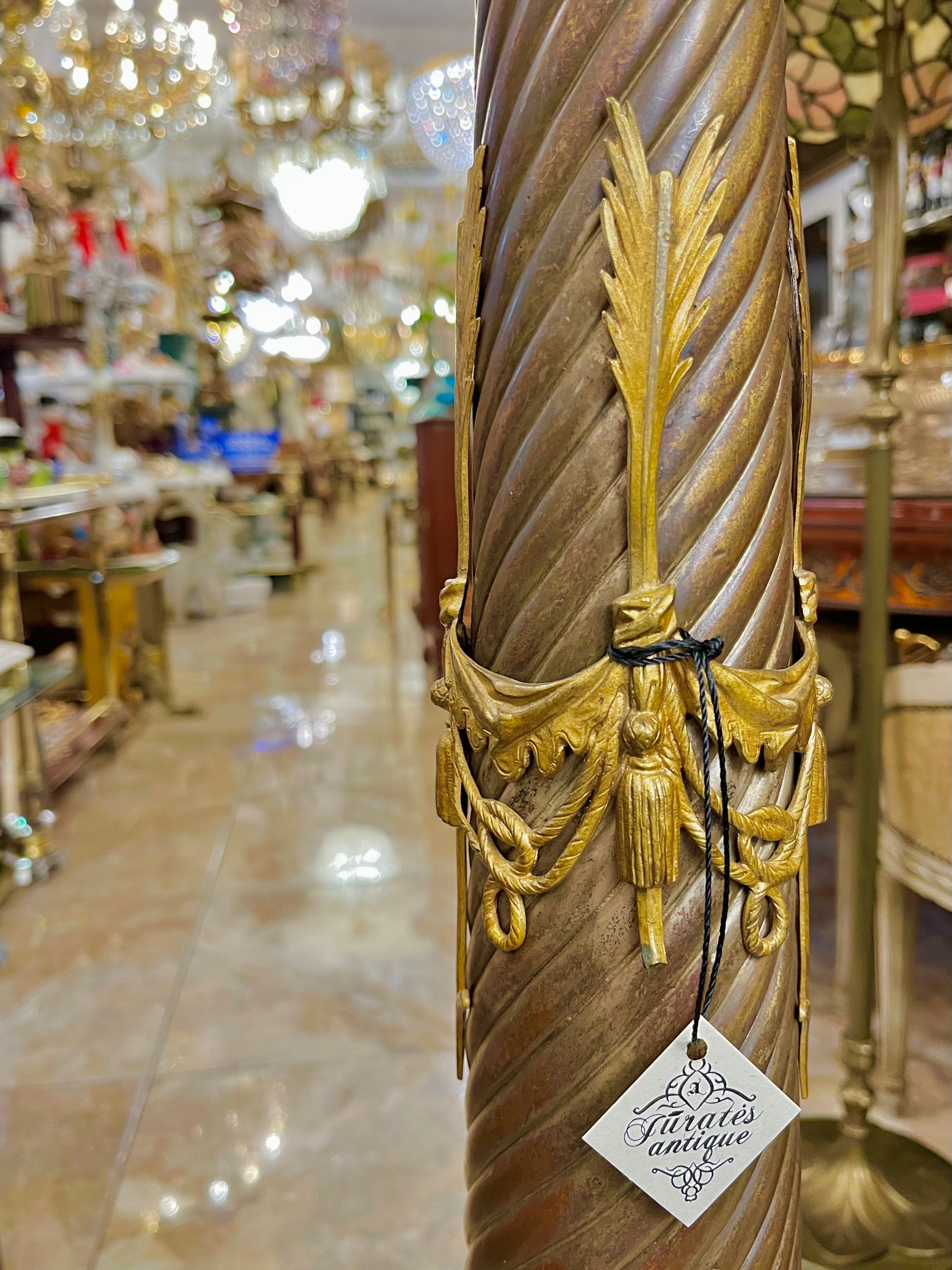 19–20 a. pradžios bronzinis toršeras – išskirtinio lygio interjero akcentas, kuriame dera prabanga, klasikinė estetika ir aukšto meistriškumo metalinis darbas.