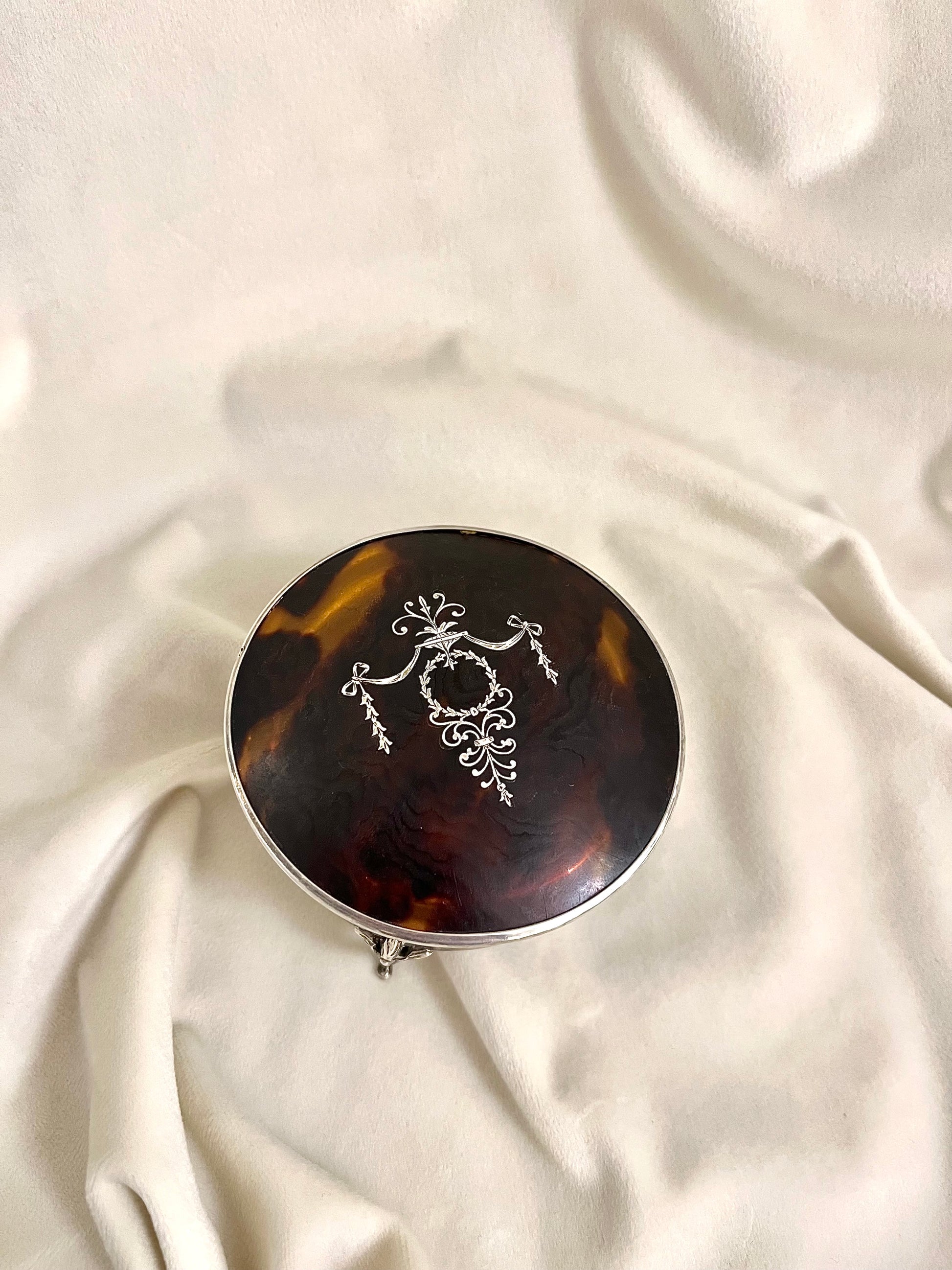 Dėžutės paviršiuje išraižyti augaliniai motyvai sukuria subtilų kontrastą su tamsiu, giliu kiauto pagrindu, o autentiški Londono prabos ženklai patvirtina jos istorinę kilmę. Tai daiktas, per pusantro šimto metų nepraradęs savo paslaptingumo (ir gebėjimo saugoti pačias brangiausias smulkmenas).
