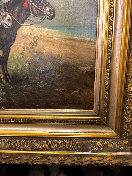Autentiškas aliejinis paveikslas ant drobės – gamtos peizažas su asilais
